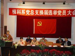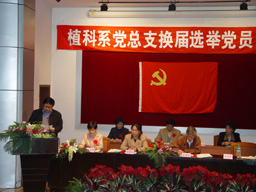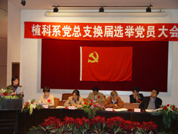 植物科学技术系党总支于2005年4月6日下午4:30在图书馆报告厅召开党总支换届选举党员大会,会议由植科系副主任赵金芳同志主持。校党委副书记罗维忠、党委组织部副部长马俊云、园林系党总支书记刘克锋出席了大会。