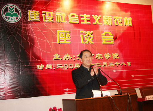 ,社会主义新农村建设座谈会在我校隆重举行。来自首都理论界、北京市农委、科委、教委、农业局的有关方面负责人和来自北京10个远郊区县的相关负责人共70余人汇聚一堂,共商首都社会主义新农村建设的具体措施。