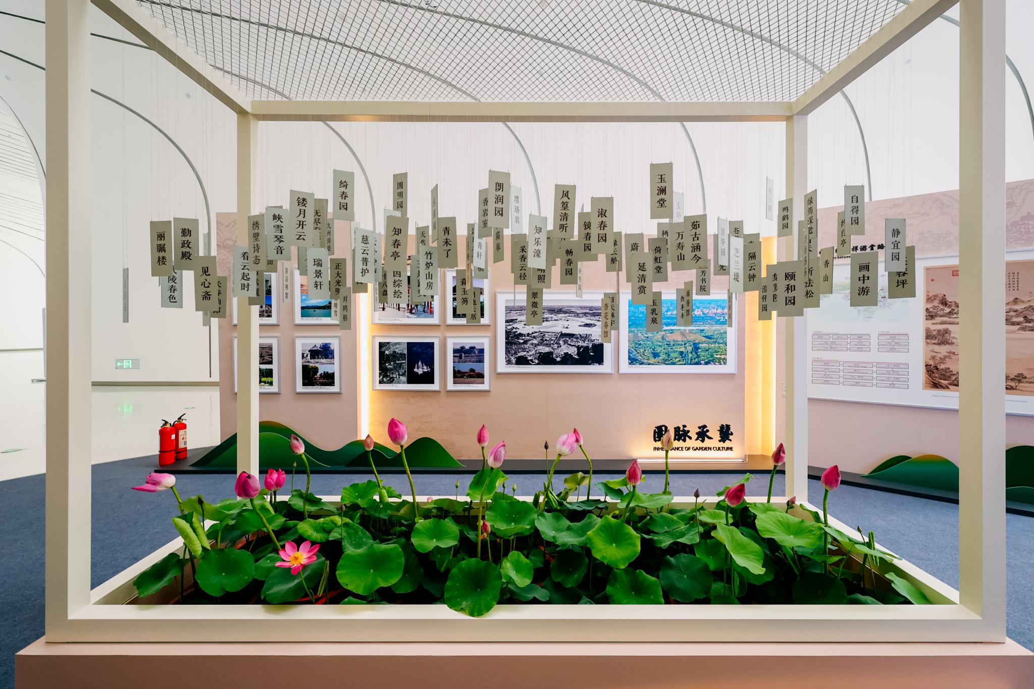 三山五园是以圆明园、畅春园、万寿山·颐和园、玉泉山·静明园和香山·静宜园为核心的清代皇家园林集群。整个地区的布局有机融入到了海淀的自然山水之中,是古代理想人居环境的典范之作,但它不幸在近代的长年战乱中遭受了严重破坏,承载了特殊的民族记忆。本次展览是学校三山五园工作室的最新作品,共包含“园景大成”“园居风尚”和“园脉承袭”三个主题。展览主视觉像一册翻开的古书,描绘三山五园盛期全景的古画嵌入其中。在150平米的开放式展区内,共有包括插花艺术作品、数字复原成果、复刻清代御玺与舆图、专题内容图版和古今影像在内的30余件展品。借助这些丰富内容,与会嘉宾可直观地了解到三山五园具有国际影响的园林艺术成就、在清代“居园理政”的独特历史功能,以及国家对其保护与传承的历程,特别是近年来海淀区创建“国家文物保护利用示范区”取得的成果。