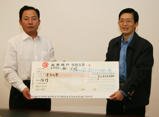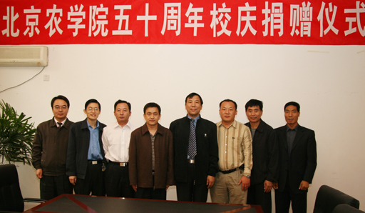 10月13日上午,中国人民财产保险股份有限公司北京市宣武支公司向我校捐赠一万元,恭贺我校五十华诞。总经理蔡丰伟来校祝贺。动科系党总支书记张永红代表学校向捐赠单位颁发捐赠证书和礼品。副院长杜晓林、动科系副主任鲁琳、科研处副处长蒋林树及部分教师出席捐赠仪式。