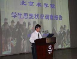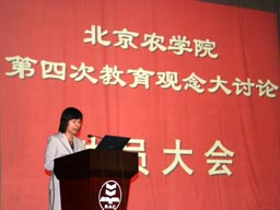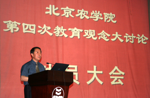他最后强调,2003年的党代会标志着我校进入了跨越式发展阶段,去年通过了教育部的本科教学评估标志我校本科教学进入了提高质量、加快改革的新阶段。我们一定要不断更新教学观念,不断更新管理观念,不断更新服务观念,把最先进的理论知识传授给学生,用最优秀的优秀传统文化熏陶学生,用最优质的亲人般的服务帮助学生。办好让人民和政府满意的教育,办好让人民和政府满意的北京农学院。