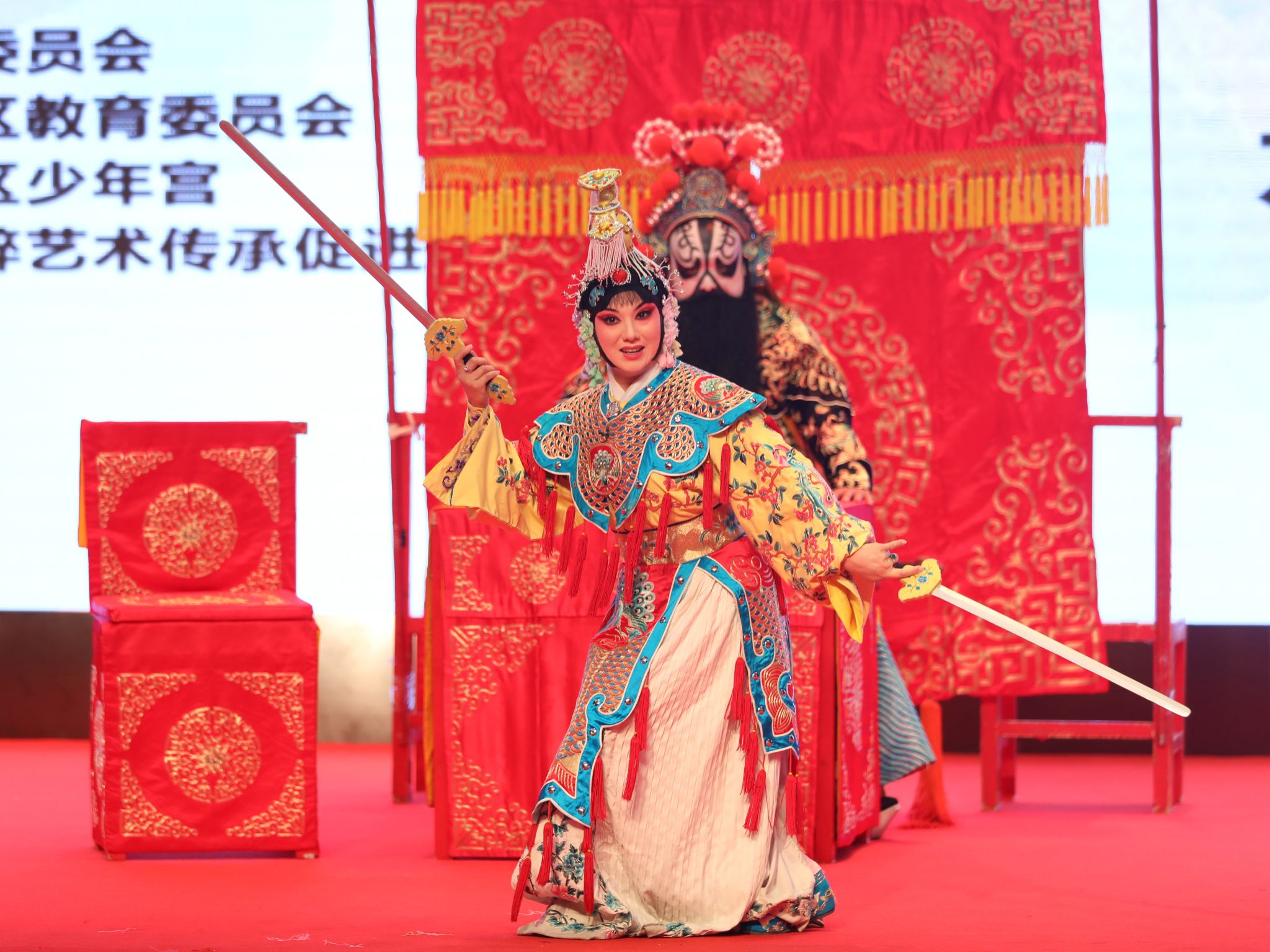 演出中,《小宴》片段深情演绎,旋律婉转,扣人心弦;《小放牛》片段轻盈飘逸,巧笑倩兮,美目盼兮;《坐宫》片段气势磅礴,沁人肺腑,尽显华夏风骨;《霸王别姬》片段庄严肃穆,悲情雄壮,重现霸王气概。演员们的精彩表演引得现场观众掌声连连、喝彩声不断。
