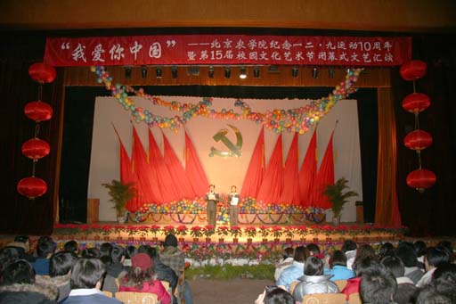 12月20日(周二)晚7:30,我爱你中国--北京农学院纪念“一二?九”运动70周年暨第15届校园文化艺术节闭幕式文艺汇演在大礼堂隆重举行。