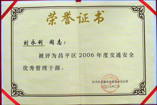 年度昌平区交通安全优秀管理干部。