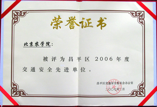 喜讯:我校被评为2006年度昌平区交通安全先进单位
