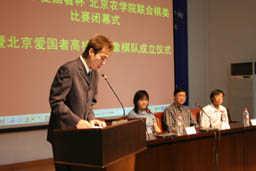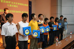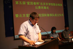 会上,各位领导以及嘉宾为各个项目获奖的同学颁奖。同时叶江川老师和北京爱国者国际象棋俱乐部代表、北京农学院的领导为以上六所高校的爱国者国际象棋队的代表授棋。