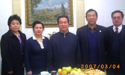 杜院长代表全校师生员工向铁木尔·达瓦买提一家拜年,并介绍了学校2006年的主要工作和取得的主要成绩。铁木尔·达瓦买提饶有兴趣地听了学校发展情况,并对学校取得的显著成绩表示高兴和祝贺。同时,他感谢杜院长代表全校师生前来看望,并表示,作为北京农学院的名誉教授,非常关心学校的发展,愿意为学校的发展做出力所能及的努力和贡献。