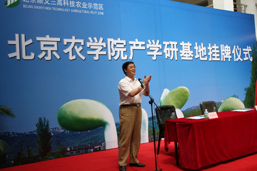 出席北京农学院产学研基地挂牌仪式的领导有北京市科委张光连处长,北京市农委王海龙副处长,顺义区王振江副区长及顺义区农委、科委、种植服务中心、养殖服务中心、林业局、“三高”示范区等单位的领导。参加挂牌仪式的领导还有我校王有年院长以及科研处、教务处、生物技术系、植物科技系、继续教育学院、食品科技系、园林系、动物科技系、经贸系、团委、学生会等有关系、部的领导。