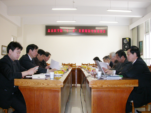 上午9点,在教学楼B座209会议室,我校召开了《北京农学院"十一五"发展规划》专家论证会。农业部原常务副部长相重扬、原中国农业大学校长毛达如、原中国农业科学院研究生院院长王汝谦、北京市农村工作委员会副主任张贵忠、中国农学会秘书长杨军、北京市教委规划发展处处长彭斌柏作为北京农学院"十一五"发展规划评审专家组成员出席会议。我校党委书记孙尧东、院长王有年、副院长杜晓林、"十一五"规划办公室主任史亚军、科研处处长张志勇、党政办公室主任韩宝平参加会议。会议由党委书记孙尧东同志主持。