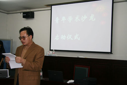 2005年10月27日晚7:00,精心筹划近一个月的青年学术沙龙活动在政法系模拟法庭正式启动。院党委副书记罗维忠、王晓霞,团委书记赵洪娥,政法系主任华玉武,副主任李刚、佟占军以及部分老师出席了本次活动。