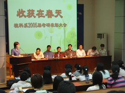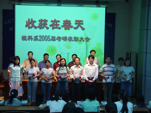 植科系副主任赵金芳在会上宣读了考取2005届研究生的同学名单。出席本次大会的领导为考取研究生的同学颁发了考研奖学金,学生代表为考取研究生的同学献上了鲜花和礼物。