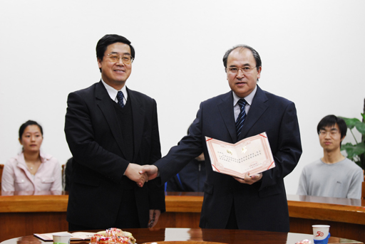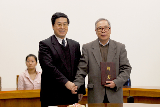 教授、我校党政办副主任郑祖池、经贸系党总支书记李华、系主任陈跃雪、副主任杨为民、刘柳,政法系党总支书记兼主任华玉武、副主任李刚、佟占军,生物技术系教授杨起简,外事办李少静以及政法系、经贸系的部分师生参加了聘任仪式。