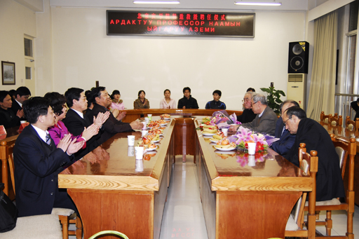 院长王有年首先致辞,对阿克尔别克副秘书长和李凤林所长的来访表示热烈的欢迎,并详细地向来宾介绍了我校的发展情况。随后院长王有年宣读了聘任决定,并分别向阿克尔
