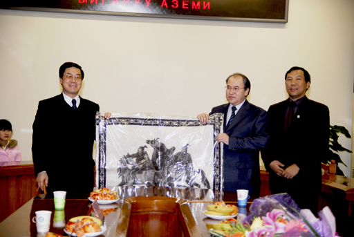 阿克尔别克副秘书长和李凤林所长也分别在聘任仪式上发表了热情洋溢的讲话。他们指出,北京农学院作为首都高校中的一所特色鲜明的农林高等院校,一定能够为都市现代化农业的发展做贡献。两位特邀教授还表示,一定尽力协助我校做好对外合作交流工作。聘任仪式上,阿克尔别克副秘书长还向我校领导赠送了精美的壁毯、毡帽和马鞭。