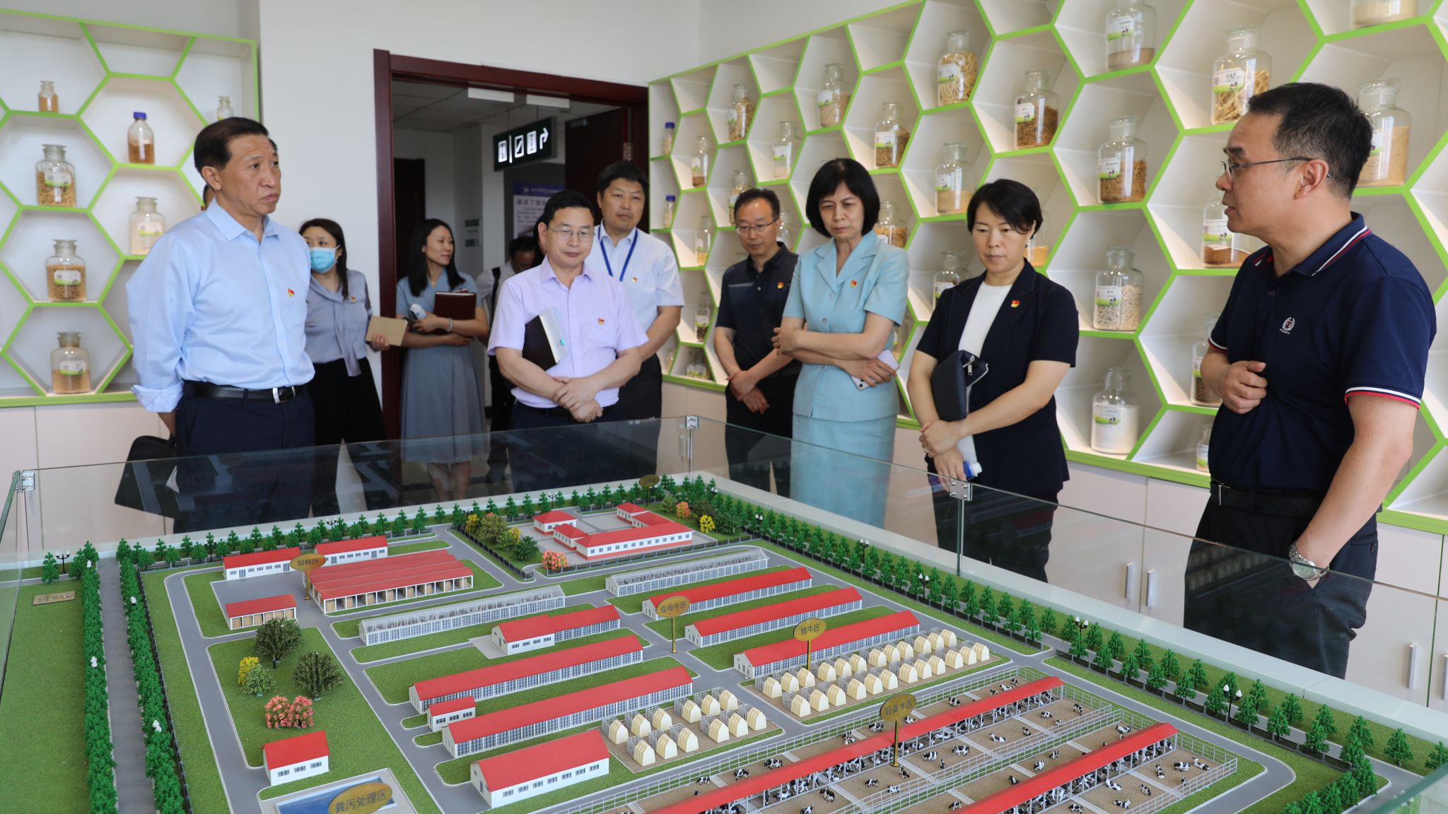 刘丽波、蔡大鹏一行还参观了学校“高质量党建引领事业高质量发展”主题展览,实地走访了奶牛重点实验室、中兽医重点实验室、国家级教学示范中心连栋温室、食品楼实验室。