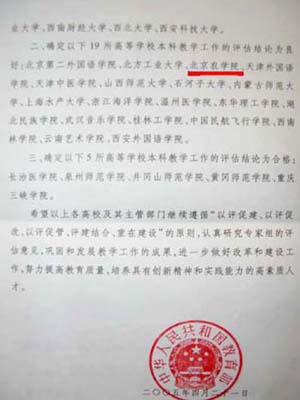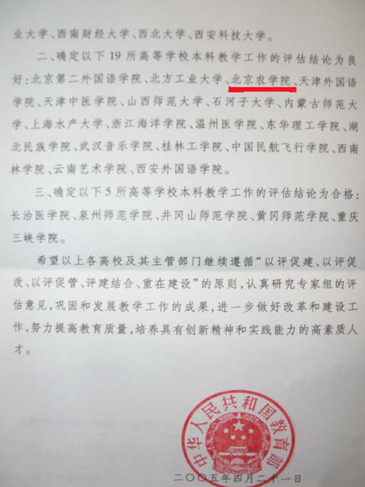 此次良好成绩的取得是全体师生员工共同努力的结果。回想一年来,教师勤教乐教,积极奉献,使我们的教育观念、精神状态有了进一步的提升;学生奋发学习,团结友爱,学生的学风建设得到进一步加强;全体师生员工更是坚守岗位,无私奉献,任劳任怨。这些努力的付出,使我校顺利通过了教育部本科工作的评估,并且获得了良好的成绩。