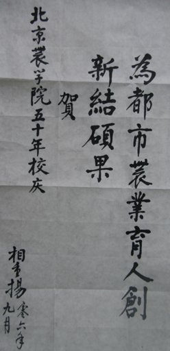 在我校迎来五十华诞之际,农业部原常务副部长相重扬向我校题词:“为都市农业育人创新结硕果”,以祝贺我校五十华诞。