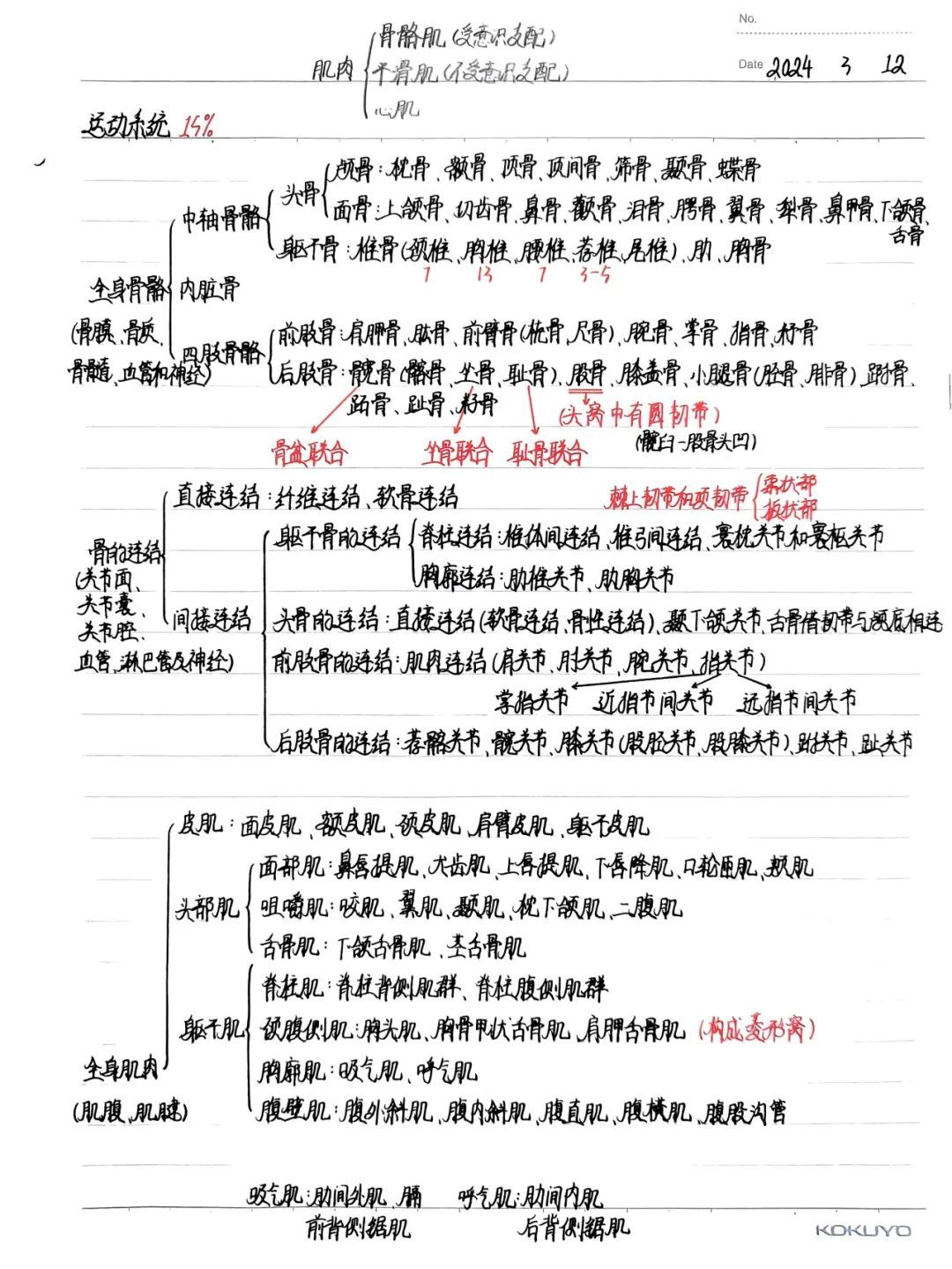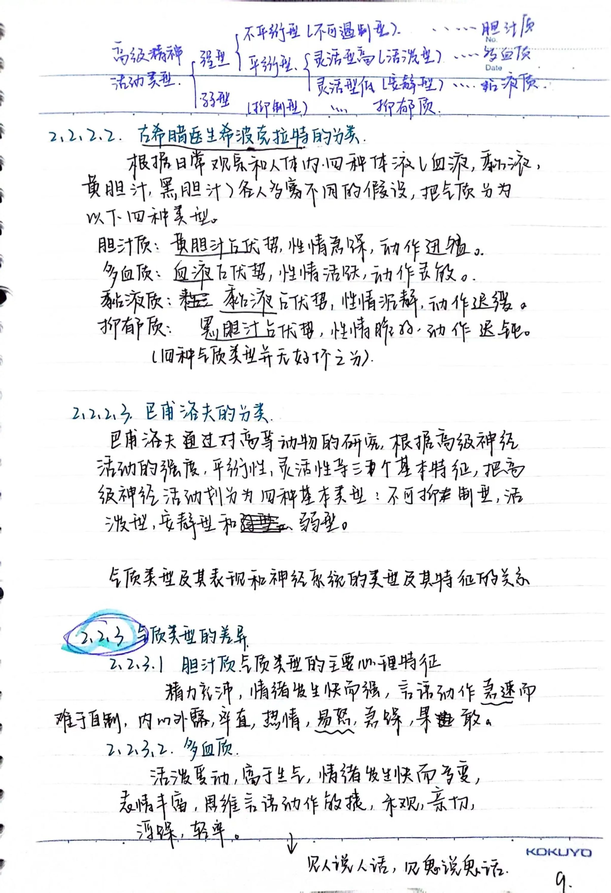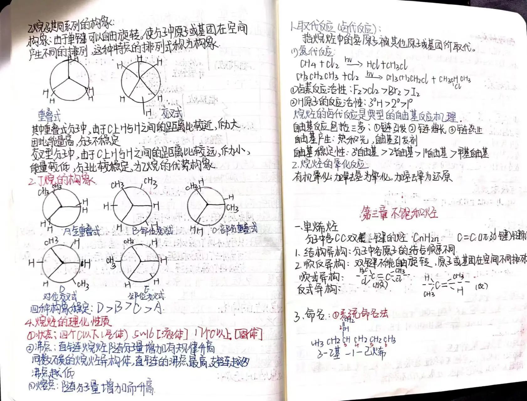 我会选择不同颜色区分知识的重点、难点、考点。黑色部分是笔记的主体部分;红色部分是我认为的难点,需要深入理解;蓝色部分是考点,复习时重点背诵。对于知识点很多的科目我会选择思维导图的形式。
