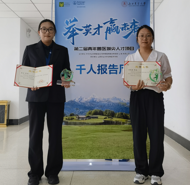 近日,2024年青年兽医拔尖人才会议在山西农业大学举行,来自全国29所动物医学类专业高校的51名师生参与评选申报,我校动物医学院学生王方、王曦林成功获选“青年兽医拔尖人才”。