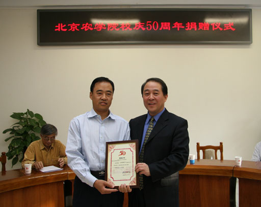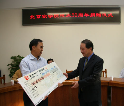 10月11日下午,唐县民生商贸有限公司总经理张路生代表公司向我校捐赠人民币22万元,以祝贺我校50年华诞之喜。