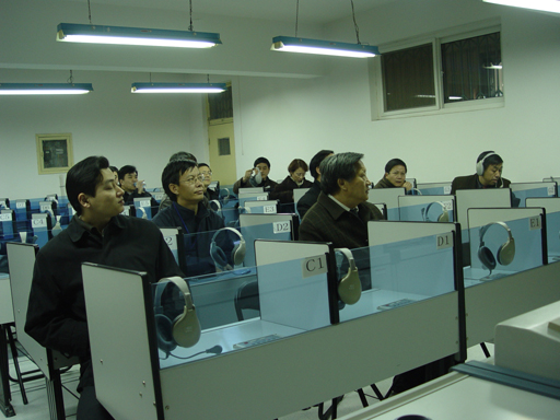 12月13日上午,教育部本科评估工作专家组组长高翅、副组长宛晓春一行15人在院长王有年、副院长王伟、副院长杜晓林的陪同下,走访了我校语言实验室检查指导工作,实验室全体工作人员热烈欢迎专家组的到来。实验室主任姜怀玺为各位专家、领导汇报了语言实验室的设备管理、规模、课时安排等情况。