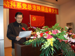 动科系党总支于2005年4月2日下午3:30在图书馆报告厅召开第五届总支换届大会,会议由动科系副主任鲁琳同志主持。副院长杜晓林、党委组织部部长张铁强、园林系党总支书记刘克锋、离退休党总支书记曲清茂出席了大会。