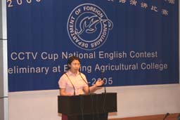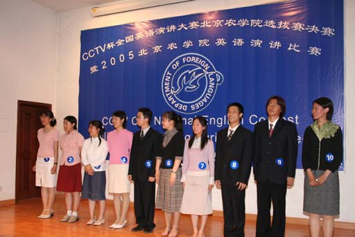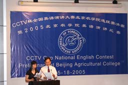 2005 CCTV杯全国英语演讲比赛北京农学院选拔赛决赛于5月18日晚在图书馆报告厅落下帷幕。