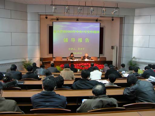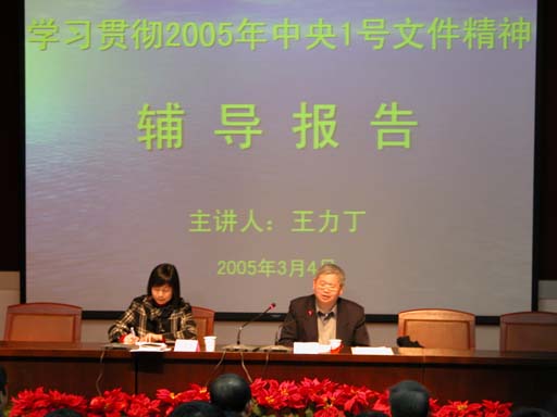 3月4日下午2点,我校进行了本学期第一次党委理论学习中心组(扩大)学习。邀请了北京市委副秘书长、市委研究室主任王力丁作了学习中央2005年1号文件精神的辅导报告。辅导报告由党委副书记王晓霞主持。