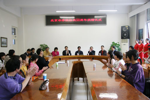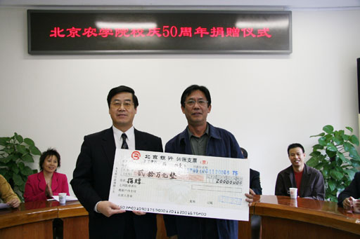 10月11日下午,北京金海琪景绿化工程公司总经理苏贵智代表公司向我校捐赠人民币20万元,向我校50年华诞贺喜。