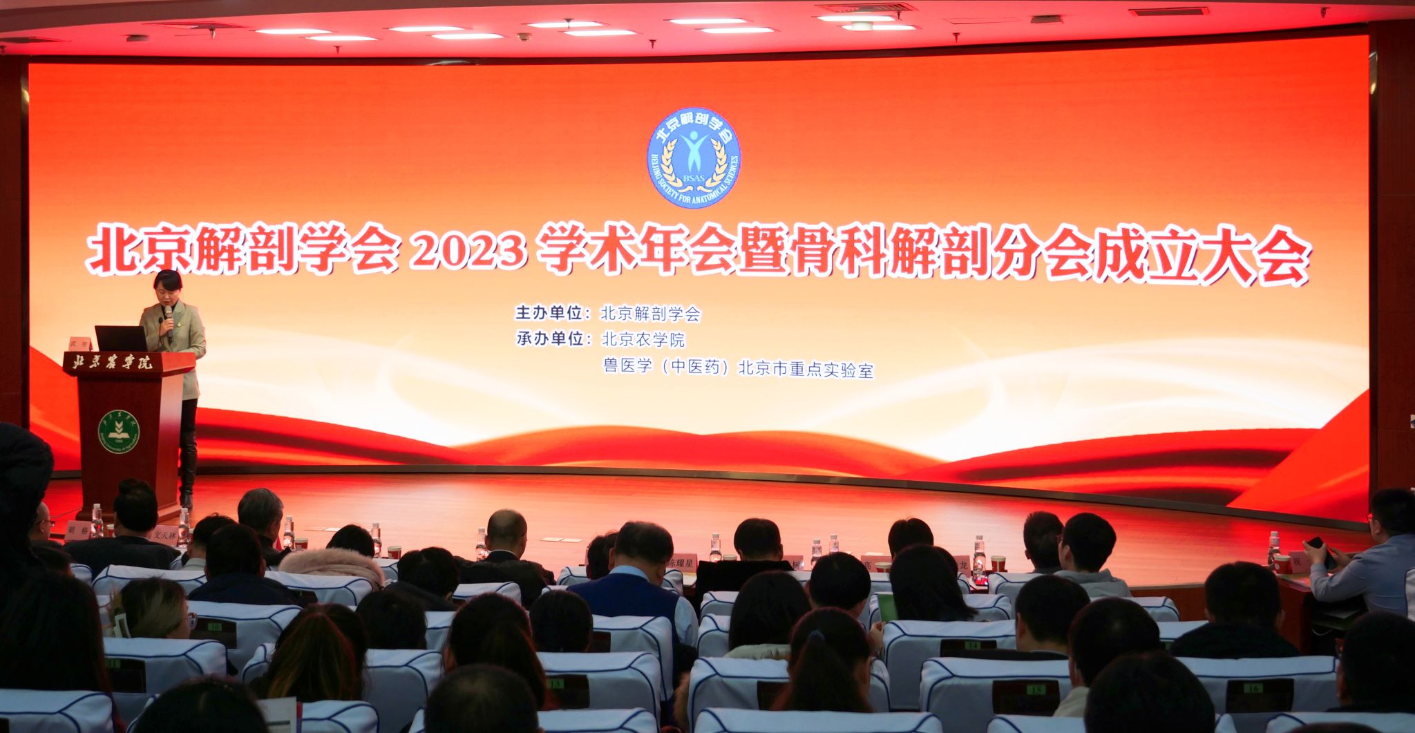 1月13日,由北京解剖学会主办、北京农学院和兽医学(中医药)北京市重点实验室承办的北京解剖学会2023年会暨骨科解剖分会成立大会在我校召开。来自京津冀地区的15所兄弟院校、50余家医疗机构、10余家企业的专家学者和代表共240余人参加了大会。北京农学院党委常委、副院长武艳教授出席大会开幕式并致辞。