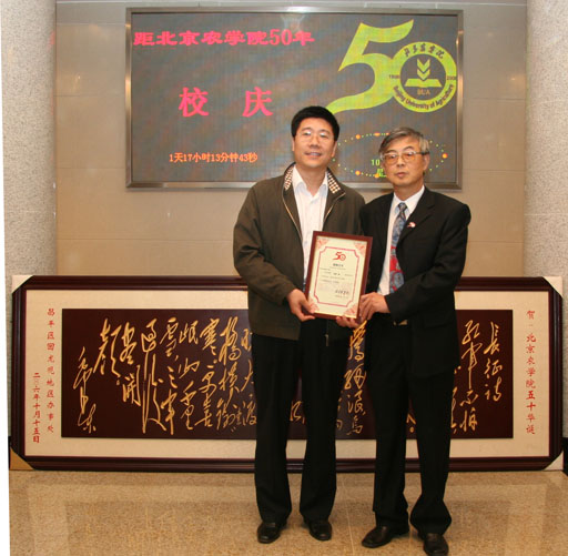 10月13日下午,回龙观地区办事处向我校捐赠贺匾,以祝贺我校五十华诞。回龙观镇纪委书记张海明来校祝贺。党委副书记罗维忠代表学校向捐赠单位代表颁发捐赠证书和礼品。