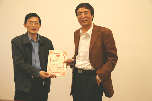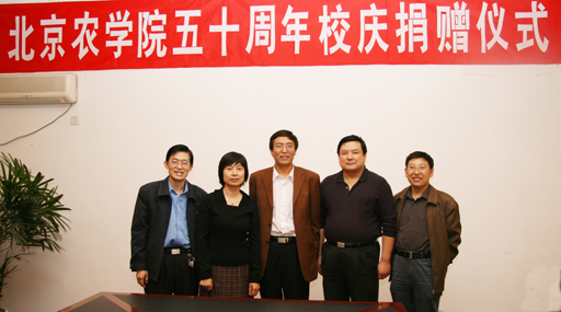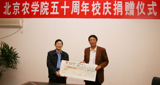 10月13日下午,北京顺鑫农业小店畜禽良种场向我校捐赠两万元,以祝贺我校五十华诞。北京顺鑫农业小店畜禽良种场场长、我校校友潘永杰来校祝贺。动科系党总支书记张永红代表学校向捐赠单位代表颁发捐赠证书和礼品。党委副书记王晓霞及部分动科系教师出席捐赠仪式。