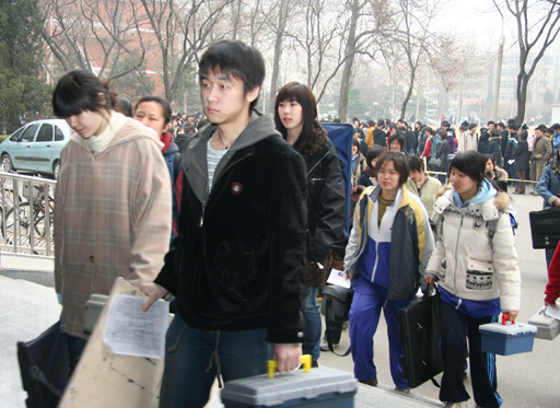 监考老师正在叮嘱考生填好姓名、考号及其他注意事项(教学楼考场)