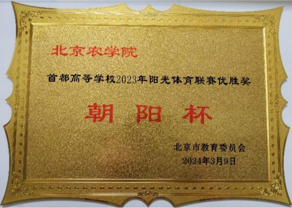 3月9日至10日,北京市大学生体育协会六届五次理事(扩大)会议召开,会上对首都高等学校2023年阳光体育联赛取得佳绩的高校进行表彰。我校获首都高等学校2023年阳光体育联赛“朝阳杯”优胜奖。