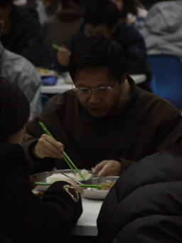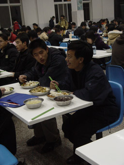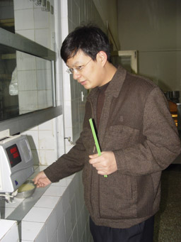 12月14日下午5:20,专家组成员赵兴绪教授、陈万明教授、陈信元教授和专家组秘书张哲峰一行4人到学校第一食堂走访考察,与学生一起就餐。专家们亲自在窗口排队打饭,边就餐边与学生进行了亲切交谈,向学生询问食堂伙食标准和质量,了解学生在校的生活情况等。