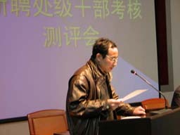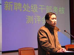 3月9日上午8:30在图书馆报告厅首先对学校党政职能部门处级干部进行了测评, 党委副书记罗维忠主持测评,党委书记孙尧东、副书记王晓霞、院长助理姚允聪参加了测评会,全体处级干部、机关和各系群众代表参加了测评。继续教育学院院长张旭山、党政办主任韩宝平、组织部部长张铁强、宣传部部长程春生、学生处处长孙亚利、保卫处处长王万山、人事处处长吴春晖 、离退休工作处处长曲清茂 、财务处副处长杨利、教务处处长范双喜、科研处副处长胡宝贵、总务处处长王惠川12位干部同志代表本部门在会上宣读了述职报告,陈述后由参加测评的人员对新聘的处级干部分别进行了民主测评,填写《处级干部考核测评表》和《处级单位工作情况测评表》。