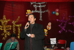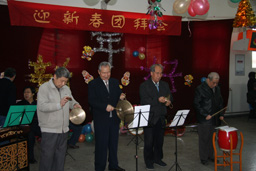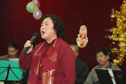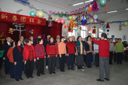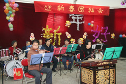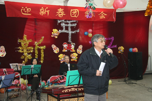 拜年仪式过后,离退休老教师、老干部向大家奉献了精彩的文艺演出。他们虽然年龄已大,但却有着年轻人一样的朝气,有说有弹,有演有唱,现场气氛十分活跃。