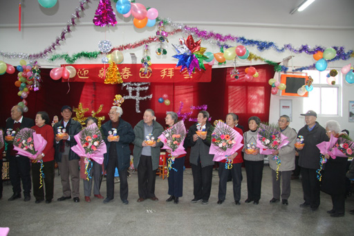 首先,出席团拜会的全体校领导向离退休老同志集体拜年。