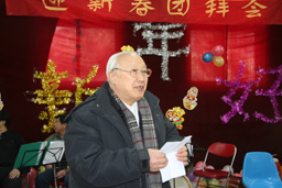 我校原党委书记张挺、退休老教师何启谦分别代表原校领导和离退休老教师向大家拜了年。