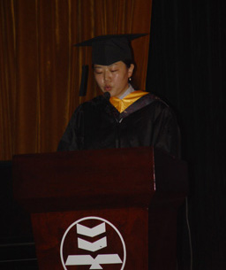 教务处处长范双喜首先宣读了“2005届本专科学生毕业和授予学士学位的决定”;校党委副书记王晓霞宣读了“关于表彰2005年北京地区高校优秀毕业生的决定”,并颁发了优秀毕业生荣誉证书;校团委书记赵红娥宣读了我校入选2005年“大学生志愿服务西部计划”的志愿者名单和我校入选2005年“首都大学毕业生基层志愿服务团”的志愿者名单;各系毕业生代表上台领取了毕业证书;动物科学技术系窦瑞东同学、基础科学系岳超同学、政法系宋桂兰老师分别代表在校生、毕业生和教师发言;郑一淳副校长代表学校发表讲话,给予毕业生美好的祝愿和殷殷嘱托。