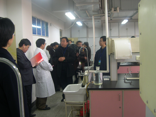 12月13日上午,教育部本科评估工作专家组组长高翅、副组长宛晓春一行15人在院长王有年、副院长王伟、副院长杜晓林的陪同下,来到我校新实验楼,考察了我校化学实验室。实验室全体工作人员对专家组的到来表示热烈欢迎。化学学科带头人、实验室主任赵建庄教授向专家组汇报了实验室的设备情况和使用现状。详细介绍了北京市精品课程有机化学课程实验教学特色,以及实验室将科研和基础教学相结合,编写的教材等科研成果。