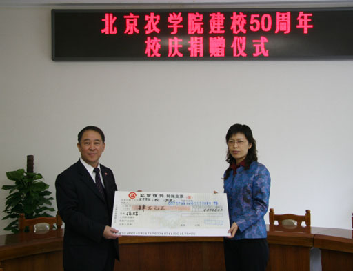 北京市农科院玉米中心8511班校友王卫红,代表北京市农科院玉米中心向我校捐款1万元;