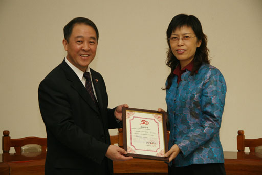 上午,我校植物科学技术系部分校友返回母校,向学校捐款,恭贺母校五十年华诞之喜。