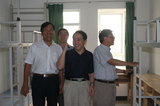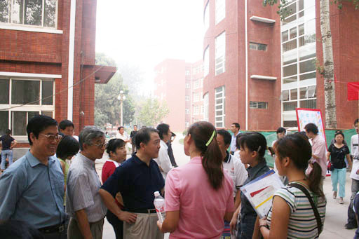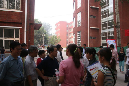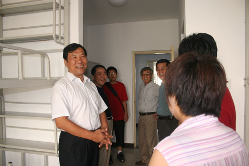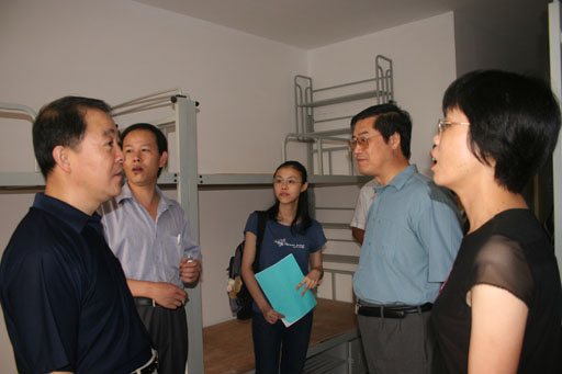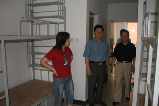 七点半不到,党委书记孙尧东、院长王有年、党委副书记罗维忠以及副院长杜晓林亲临报到点现场,慰问迎新工作人员,了解新生情况。之后,来到学校新公寓,查看学生住宿条件,倾听学生和家长的感受。