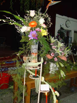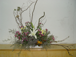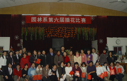 插花课程是园林系的传统课程,学生学习的兴趣很浓。为了更好的开展第二课堂教育,将学生活动与教学内容相结合,园林系自99年来,已