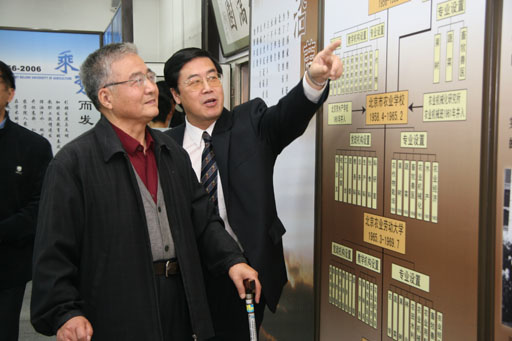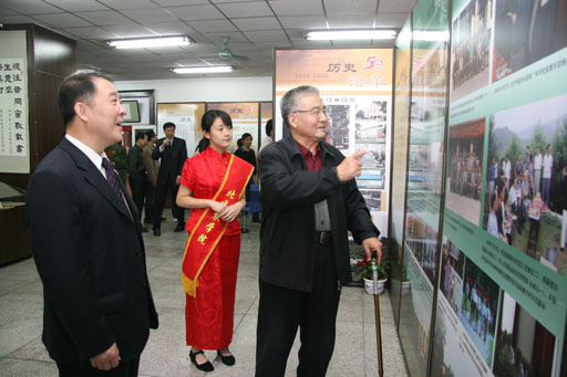 原我校党委书记张挺出席开展仪式并与院长王有年一同为校史展接牌。