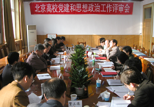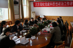 11月3日上午,市委教育工委考察组抵达我校,对我校申报的党建和思想政治工作先进校单项奖进行检查评估。考察组组长市委教育工委副书记刘建,市委教育工委联络员、原北京航空航天大学党委副书记曾妙南,市委教育工委联络员、原市委教育工委委员张希文,市委教育工委联络员、原北京林业大学党委副书记吕焕卿,市委教育工委干部处调研员张爱群,市委教育工委干部处助理调研员张健,市委教育工委组织处姬云鹏,《北京高校领导班子建设5年规划》课题组组长刘晖等一行8人,在第三会议室听取了学校领导的汇报。