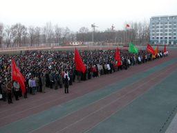 12月9日下午4:00,全校师生员工在学校田径运动场隆重召开誓师大会。这是我校历史上规模最大的一次大会,这是一次凝聚力量的大会、鼓舞士气的大会、吹响进军号的大会,将载入学校的史册。