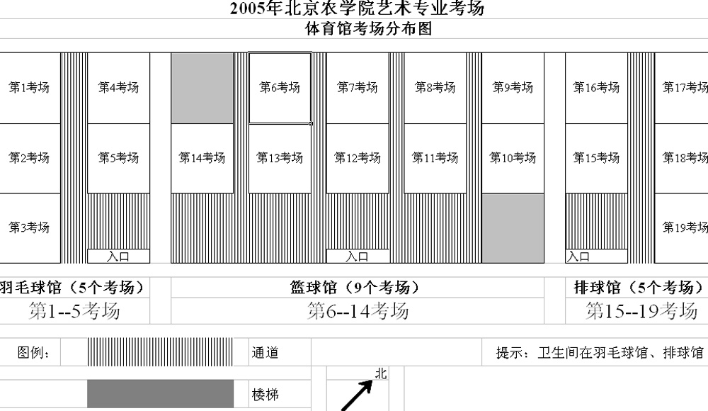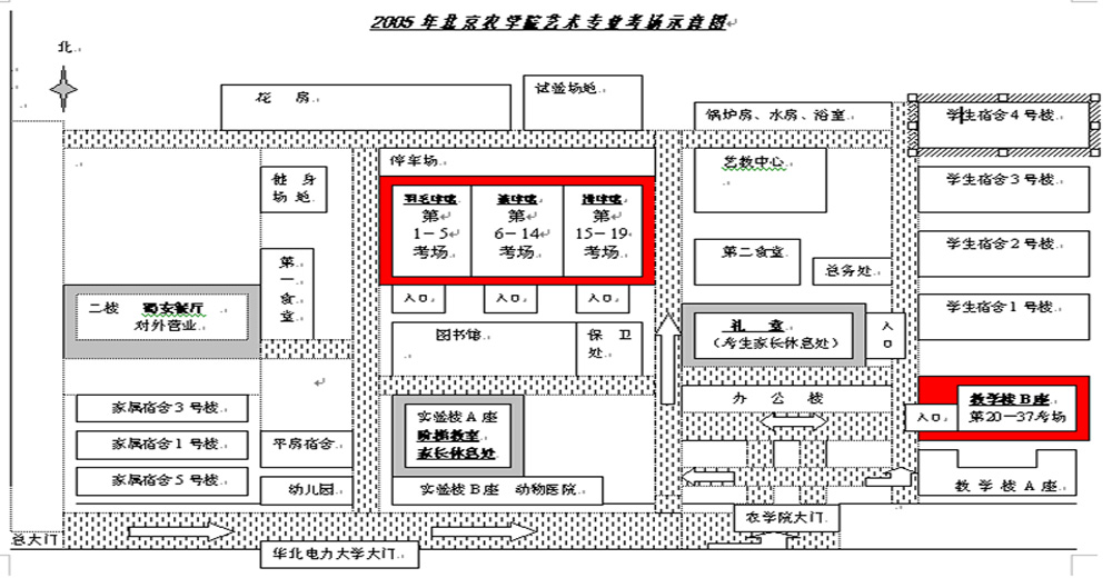 2005年北京农学院艺术专业考场示意图