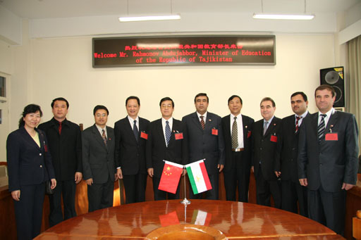阿布杜扎波尔部长发表了热情洋溢的讲话。他首先祝贺我校建校50周年。他表示,北京农学院是专门培养农业人才,服务农业、服务农民的高等学校,中国又是农产品生产和出口大国,开展塔国的高等院校和我校合作,将具有宽广的空间。